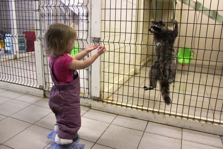 Барашек Бебека, в честь которого назван зоопарк, периодически меняется :) Когда они становятся большими, их отвозят на дружественную ферму и берут нового молоденького, чтобы дети не боялись. Еще есть милашка-носуха, ну такая обаятельная, высовывает носик через решетку и смотрит, что ей принесли. А крошка-енот так ловко перемещается по сетке и добывает пропитание себе и своей енотихе :)