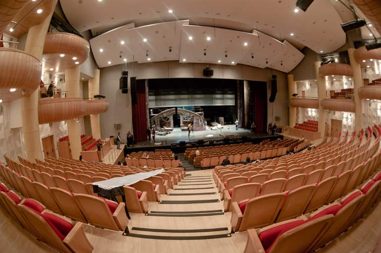 Хочется отметить, что театр находится в современном футуристическом здании. Я как то не ожидала , что фольклорный театр может размещаться в таком здании, фойе тоже в "стиле". Зал прекрасный, всё видно и слышно с любого места. Зал новенький, светлый и чистый, мне очень понравилось в театре.