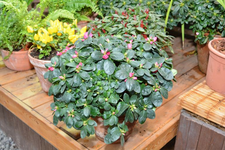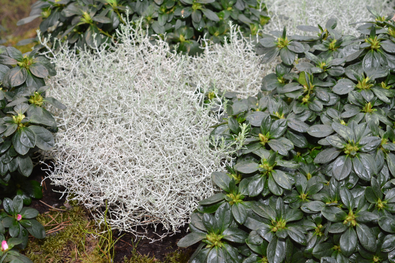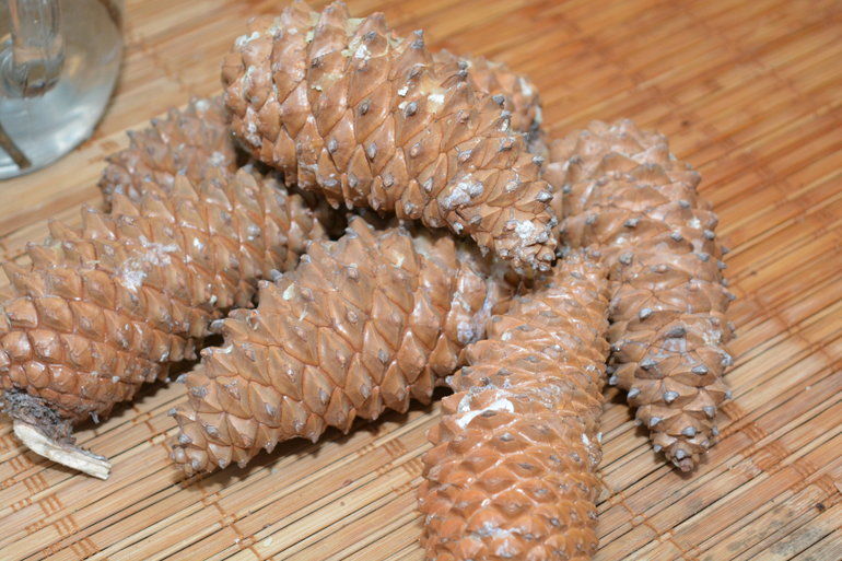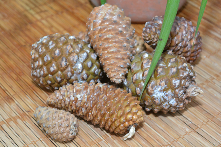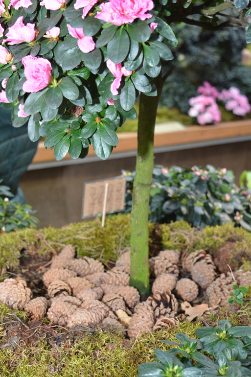 А этими красивыми шишками было украшено пространство между цветами и горшки с азалиями.