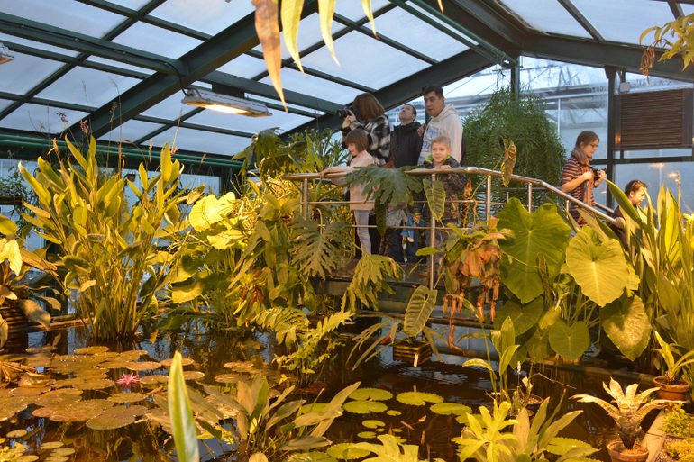 Посетили новую Викторную оранжерею со стеклянной смотровой площадкой и цветущим бананом.