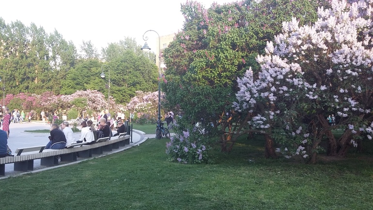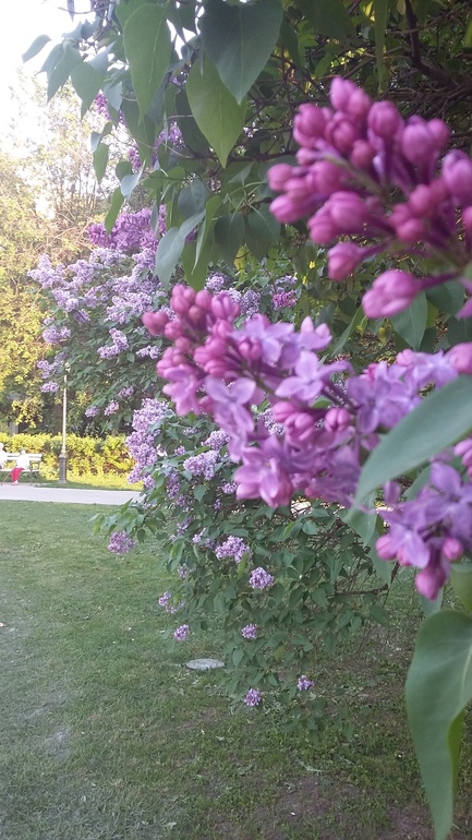 Прочитала, что в Сиреневом саду более ста сортов сирени. Не считала, конечно, но много, видно невооруженным взглядом.