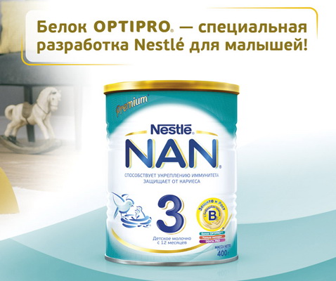 Я всегда придерживалась мнения, что лучше, чем молоко мамы, для ребенка нет ничего. Собственно, и сейчас я так считаю. Успешно докормив дочурку до полугода, я была вынуждена отлучаться из дома по рабочим моментам и прочим делам, и встал вопрос о том, что пора подбирать докорм, так как молока к тому же уже не хватало. Тщательно изучив всевозможные смеси, и соотношения цена- качество, я остановилась на смеси NAN Гипоаллергенный 2, так как у ребенка была склонность к аллергии. Смесь нам подошла, и вот нам уже исполнился год, и повезло принять участие в тестировании молочка NAN3 Optipro. Которое подходит деткам от 12 месяцев. Я была довольна его составом, в котором и бифидобактерии, и специальный белок OPTIPRO, который не перегружает желудочно-кишечный тракт ребенка, и липиды DNA, которые полезны при формировании мозга и зрения. А дочурка осталась довольна вкусом- она с удовольствием его пьет перед сном, и ест кашки, которые я развожу этим молочком. Оно очень легко растворяется, без комочков. Молочко нам привозили в большой банке 800 грамм, она уже давно закончилась,но мы продолжаем его покупать, так как оно нам отлично подошло.