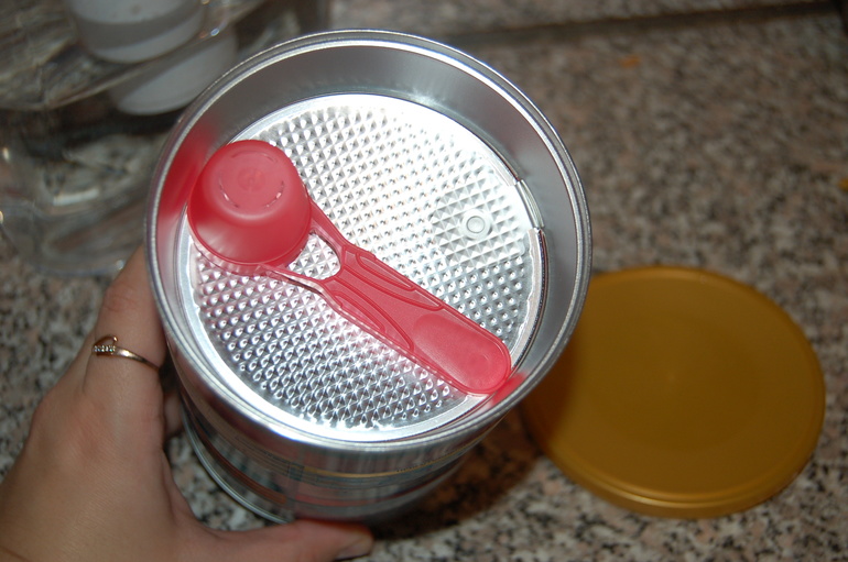 Удобно хранить, молочко защищено от попадания влаги и света, мерная ложечка в комплекте (внутри баночки)