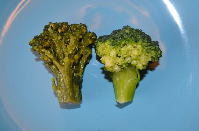 Запасов заморозки было много, но последняя от Маркета меня просто убила. Смотрите фото. Рядом (справа на тарелке) брокколи, которое я купила на рынке, помыла, разделила на соцветия и заморозила сама.