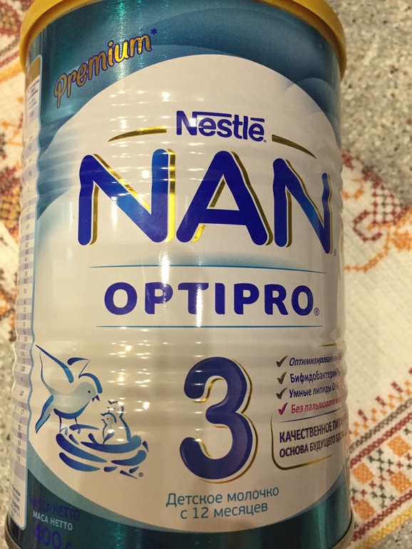 NANСовсем недавно решили попробовать молочко NAN 3 OPTIPRO дочке понравилось. Мы вообще очень долго подбирали молочко после отмены грудного вскармливания так, как то аллергия на одно, то запор от другого. Но эта смесь нам подошла идеально. Молочко просто в приготовлении, хорошо и быстро разводится без комочков. Состав отличный, так, как для нас отсутствие пальмового масло является главным фактором в выборе смеси. То, что в составе молочка также присутствует адаптированный белок для гармоничного роста и развития тоже несомненный плюс! Упаковка обычная - удобная банка, внутри мерная ложечка. Так же как и в большинстве смесей расчёт идёт 1 мерная ложечка на 30 мл воды. Вообщем минусов пока не нашли, поэтому рекомендуем!