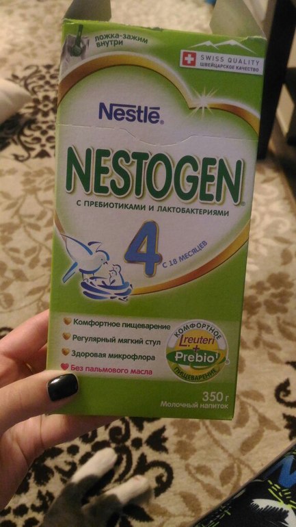 NestogenПоследнее время мучаемся с запорами. Решили попробовать Нистожен 4, т.к он с пребиотиками и лактобактериями. При покупке выбирали чтоб не было пальмового масла. Остались ооочень довольными, с ним стул налаживается,ребенка ничего не мучает.