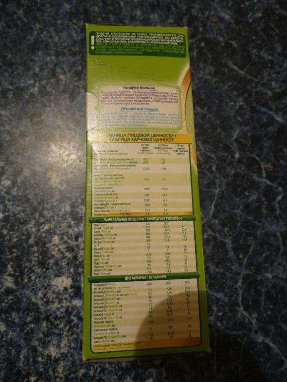 NestogenМой сын находится га искусственном вскармливании практически с рождения. За это время успели попробовать несколько смесей и остановиться на оптимальной для меня и малыша. К году сын перешел на общий стол, но привычка попить молочка на ночь остается с нами и по сей день. Пришлось искать новую смесь более приемлемую по цене, и не хуже по качеству чем та, что была ранее. Почему более дешёвую? Увеличился расход смеси. Значительно увеличился! И так как смесь теперь это не основной продукт питания, а просто приятный бонус, искала замену. Но при этом основным пожеланием было, что бы состав был не хуже, чем у предыдущей. Не хотелось пичкать ребенка сладкой жижей. Выбор пал на детское молочко "Nestogen 4" с пребиотиками и лактобактериями. В первую очередь привлек состав, в котором отсутствовал сахар и пальмовое масло. Но при этом присутствовали пребиотики, витамины и лактобактерии. Что несомненно положительно сказывается на пищеварении малыша. Смесь не вызвала никаких кожных реакций, не было высыпаний и покраснений. Не было так же отрицательной реакции со стороны ЖКТ. Смесь упакована в герметичный металлизированный пакет, который помещен в картонную коробку. В комплекте так же идет мерная ложечка - зажим. Что является несомненным плюсом, так как не надо ломать голову чем закрепить открытый пакет со смесью. Разводила смесь по инструкции, при размешивании не было комков и силиконовый поильник не забивался. Произведено компанией Nestle. А как известно швейцарское качество не подводит не только при покупке часов, но, и как я смогла убедиться, и смеси. Рекомендую как вкусный перекус для любимых малышей.