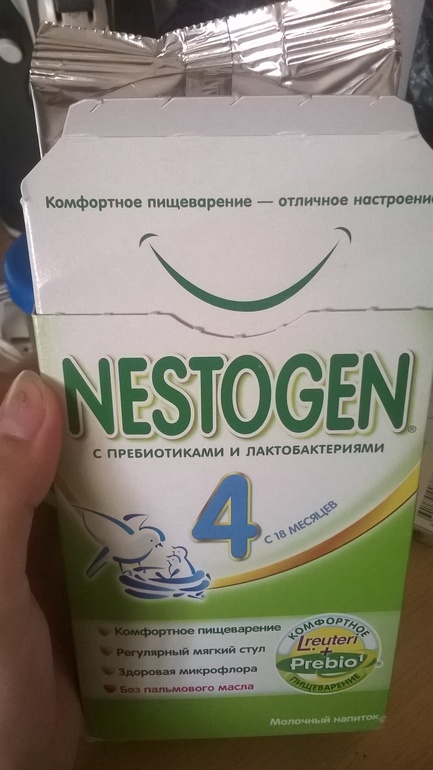 Nestogenу сына аллергия на коровье молоко, а вот смесь пошла прекрасно! нам уже 2 года, витамины получаем вместе с Нестожен 4. И без пальмового масла! Со стулом у ребенка нет проблем, все работает как часы! Очень важно швейцарское качество и наличие прищепки на ложечке, с ней открытая смесь прочно закрывается и не рассыпается, особенно важно, если вы в берете ее в дорогу