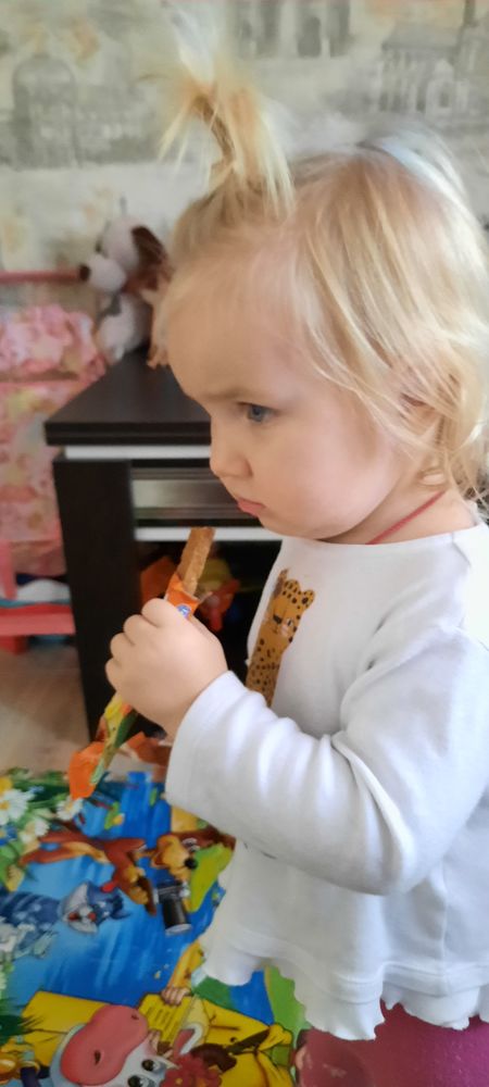 Ребенку 1.5 г. Но видя сладости у родителей,ей тоже конечно нужно все попробовать. Но не хочется давать ещё сладости, поэтому решила приобрести на пробу батончики.Купила в ближайшем магазине батончики Агуша яблоко-банан. Состав хороший,нечего не