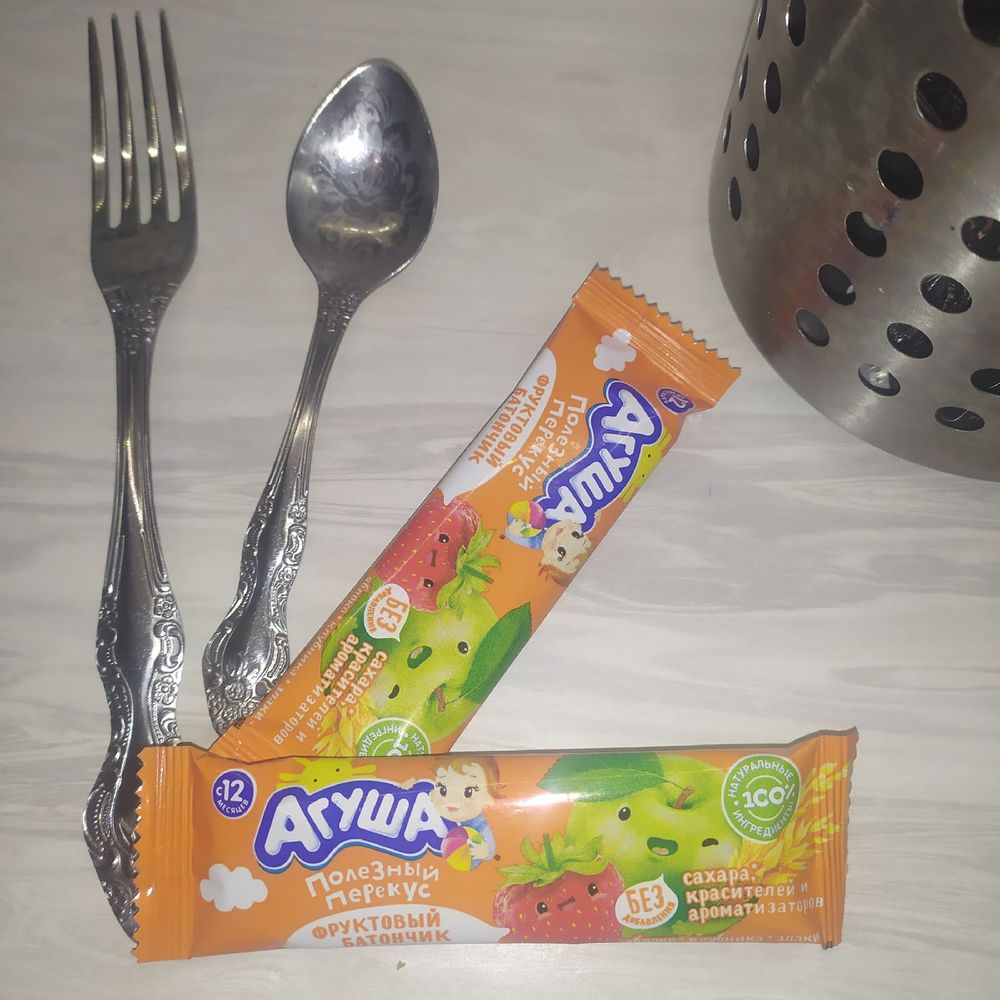 Решила попробовать новинку, фруктовый батончик Агуша "яблоко-клубника-злаки":
