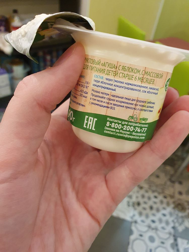 АгушаВарюше 8 месяцев и мы потихонечку ввели в рацион творожки, при выборе я обращаю внимание только на дату, так как состав у всех примерно одинаковый. Агушу на полках магазинов у дома в моем городе найти почему-то довольно сложно - только детский мир! Варюне очень понравился творожок, жидкая консистенция это большой плюс! так как твтрожки других производителей приходится запивать водой. Но меня смущает сильный яблочный запах, при всей натуральности состава, довольно химический(
