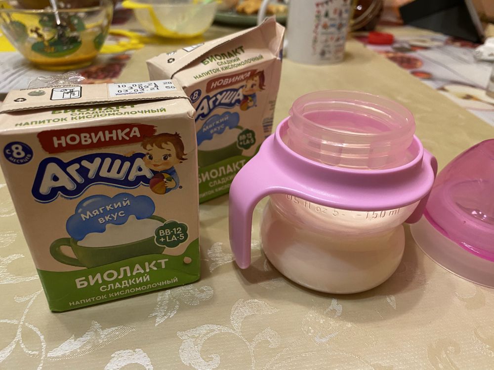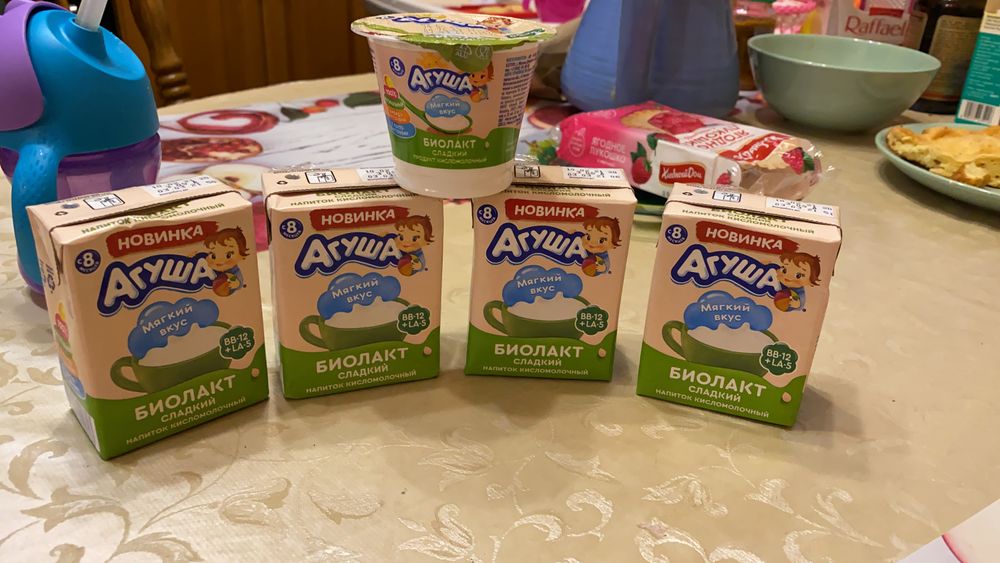 Моя дочка, которой 1,5 года, очень любит Агушу: каши, йогурты, творожки, да и вообще всю молочку. Не так давно мы попробовали биолакт без сахара, а на днях начали кушать (пить) биолакт сладкий.