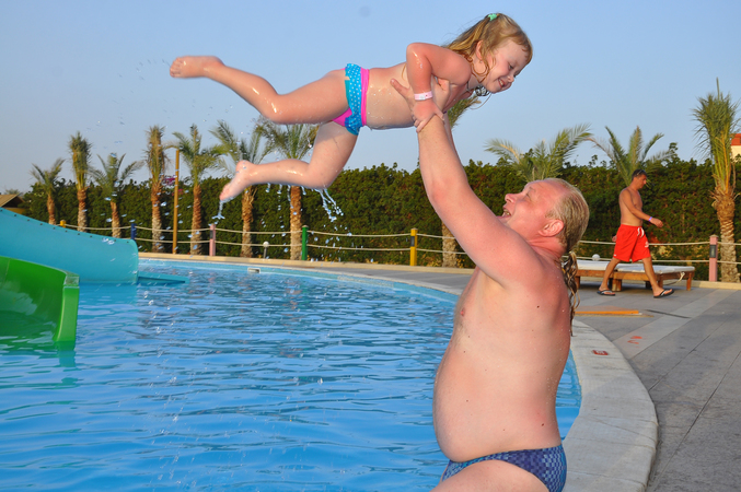 Этот бассейн всего 55 см глубиной, и мы там тусили постоянно)) Что не сделаешь, ради любимой дочурки)) он почти горячий, и можно не вылезать, хоть целый день))