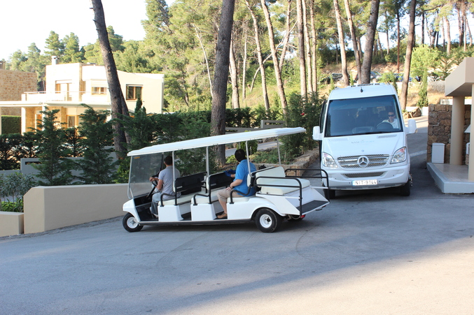 По территории отеля курсируют клабкар (электромобили)- их можно совершенно бесплатно вызывать, а между отелями, комфотрабельные мерседесы - ШатлБас