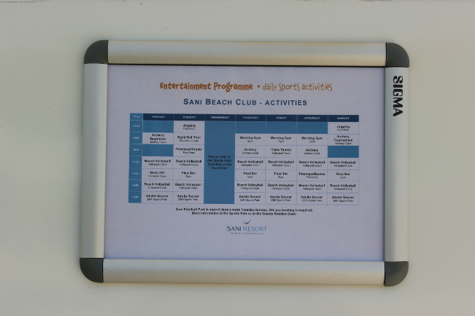 спортивные площадки (за завтраком на столе стоит буклет, в нем расписана программа на день, где и во сколько проходят спорт игры, и просто все по отелю)