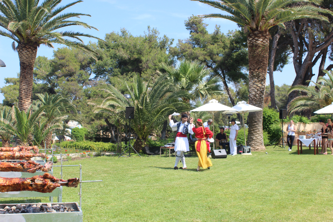 На вертелях жарились 4 ягнёнка и были национальные танцы, это все проходило возле бассейна с мини-фуршетом.