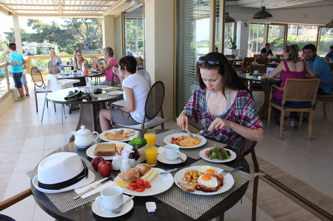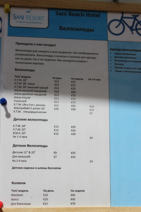 Мы поехали в SANI BEACH CLUB с 1 по 8 мая 2013г. Должны были ехать втроем (я, муж и сын), но муж перед отъездом заболел, и чтоб не заразить сына и не болеть всем вместе на отдыхе (вообщем через дня 4 я тоже заболела от мужа), мы его за день до вылета оставили бабушке (оказалось сынок все равно подхватил заразу от папы и болел у свекрови с температурой 39, но нам они не говорили). Ну ладно, все бывает, значит так должно было быть!