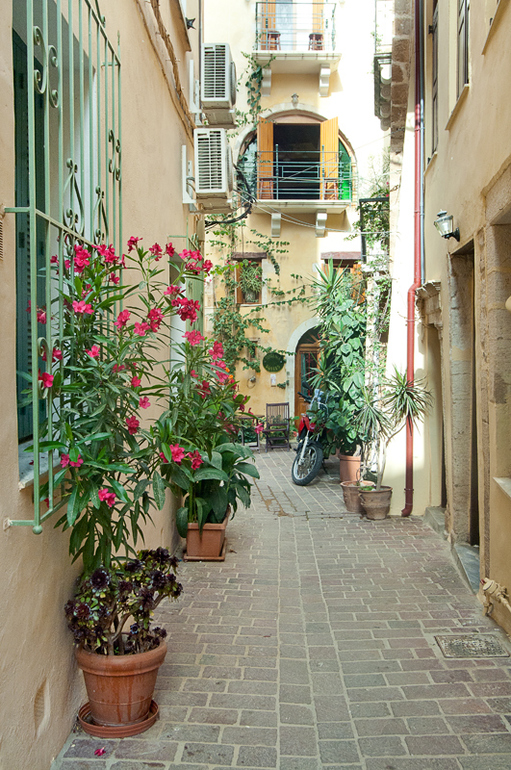 Жили мы на Крите в красивейшем городе Ханья, расположенном на северо-западе острова. В первые дни я никак не могла привыкнуть к ритму жизни здесь. Меня удивило огромное количество туристов, гуляющих по старой части города, множество магазинов с сувенирами на каждом шагу, таверны, кафе, рестораны. Мне показалось, что всего этого уж очень много, а люди только и делают, что едят и покупают сувениры)). Но потом я заглянула в самое сердце старого города, на маленькие, живописные улочки с опшарпанными стенами домов, необычными дверьми и огромным количеством цветов у входа в каждый дом... И я влюбилась!!! В эту маленькую Венецию! Меня как магнитом притягивали эти улочки, особенно туда, где практически не бывало туристов. Старый город Ханьи, наверное - это самое романтичное место, в котором я была (не считая Венеции конечно). Каждый день мы с Сашей часами гуляли там и я наслаждалась своими эмоциями и приливом вдохновения. Так хотелось взять холст, краски и начать рисовать! Но у меня был с собой только мой фотоаппарат, поэтому фотографий получилось очень много, покажу некоторые из них...