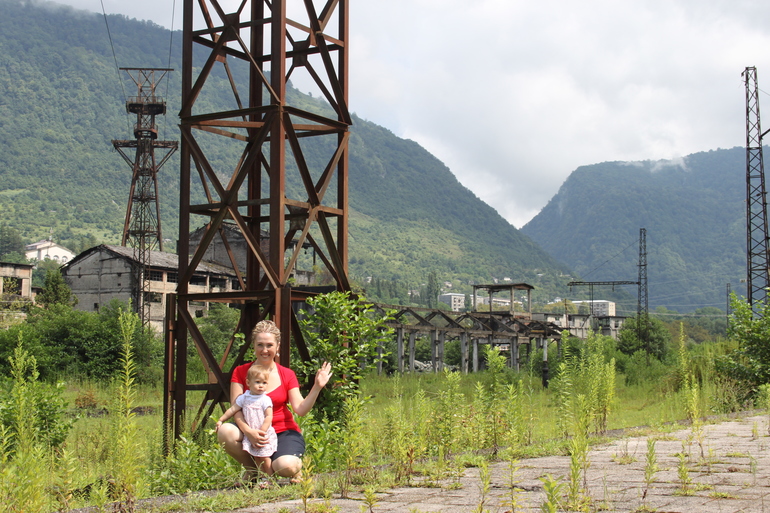 Город-герой Ткуарчал...За нашими спинами полуразрушенные дома и заводы