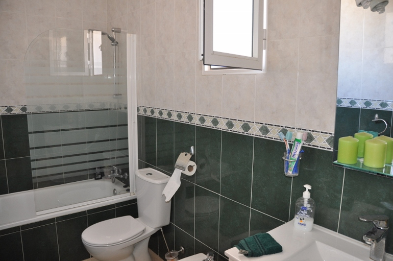 На 1м этаже: терраса открытая, салон, кухня с выходом к бассейну, две спальни две ванных. Одна ванная внутри спальни.