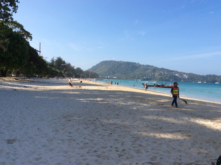 Прилетели, быстро получили багаж, хотя долго простояли на паспортном контроле, потому что решили зайти вначале в туалет. После получения багажа пошли менять деньги. Обменник был закрыт, поэтому снимали рядом в банкомате. На выходе, среди толпы встечающих с табличками был и наш. Трансфер я заказывала заранее при бронировании отеля. Первая наша остановка был пляж Ката бич. Ехать до него минут 45-50. Ребенок устроился на руках и проспал всю дорогу.