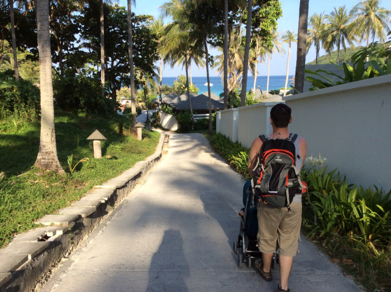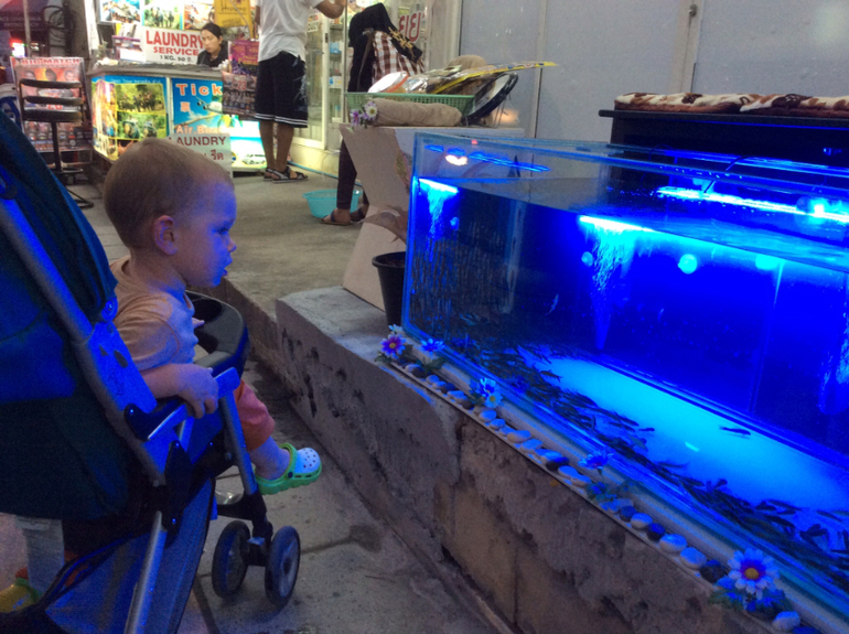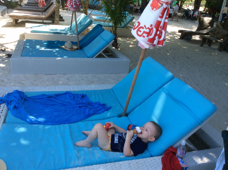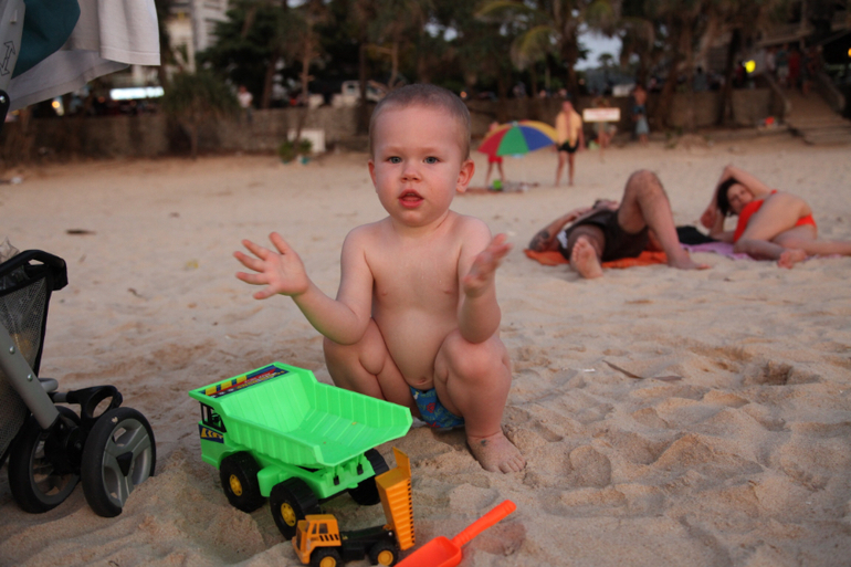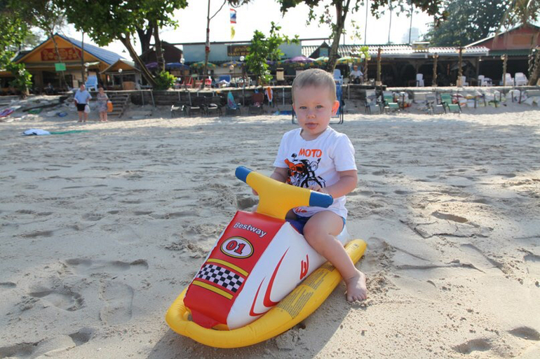 Для нас это редкое явление, дома уже давно ногами ходит, либо самокат/машина/беговел, поэтому коляска- что-то особенное, не вытащить уж если сел) а вообще, там расстояния такие, что можно спокойно пешком ходить, если совсем далеко не уходить... Я бы не сказала, что у меня прям такой спокойный, просто все вокруг новое и интересное, в т.ч и мороженое) он у меня его отобрал и отдавать не хотел, а напротив лодки подплывали, поэтому лежал и смотрел) все действие — максимум минут 10) но все дети разные, правда) мне приятнее там в песке ковыряться, чем в песочнице... Мы не валялись-загорали ни разу. Просто многие считают, что в Тайланде грязь, антисанитария, инфекции, жара несусветная, ничего нет и как в такие условия везти ребенка.