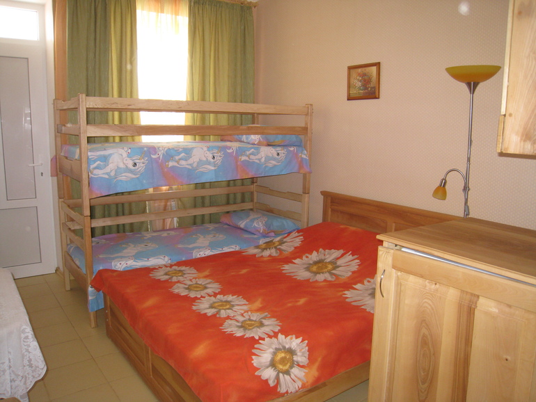 Здравствуйте! В номере стоит 2-хспальная кровать+2-х ярусная кровать.Стоимость НОМЕРА в сентябре 1000 руб.