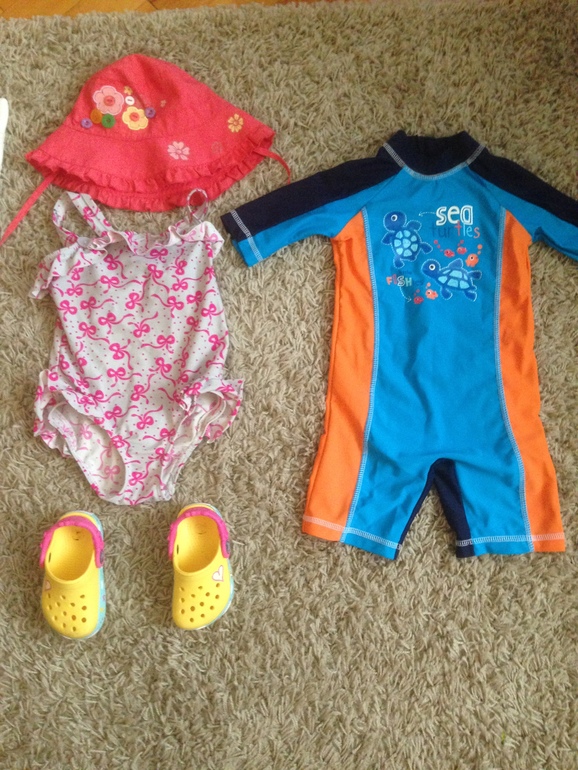 Куча одежды вообще не нужна)))Пару платьев на пляж ходить,трусиков шт 5,да и на вечер одежды,буквально 3-4 наряда!Исходя из своего опыта на пляже они у меня ходят только в плавках и тунике (там кстати продаются по 5 долларов,хорошие легкие с длинным рукавом,они у меня в них совсем не загорели даже),костюм для купания точно не нужен,жарко в нем да и не комфортно,тем более такому маленькому !И вместо купальника лучше брать просто плавки красивые,удобней и нигде ничего не тянет.