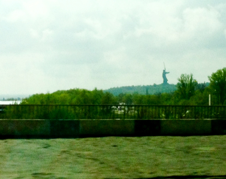 Очень хотелось побывать на Мамаевом кургане. Думали это сделать на обратном пути. Но благодаря ж/д переезду, где мы простояли больше часа (спасибо ему за это), поездке не суждено было состояться. Поэтому фото только издалека.