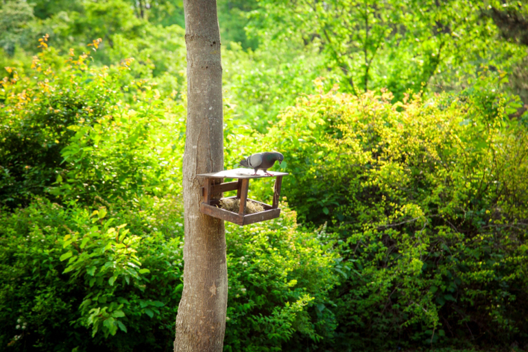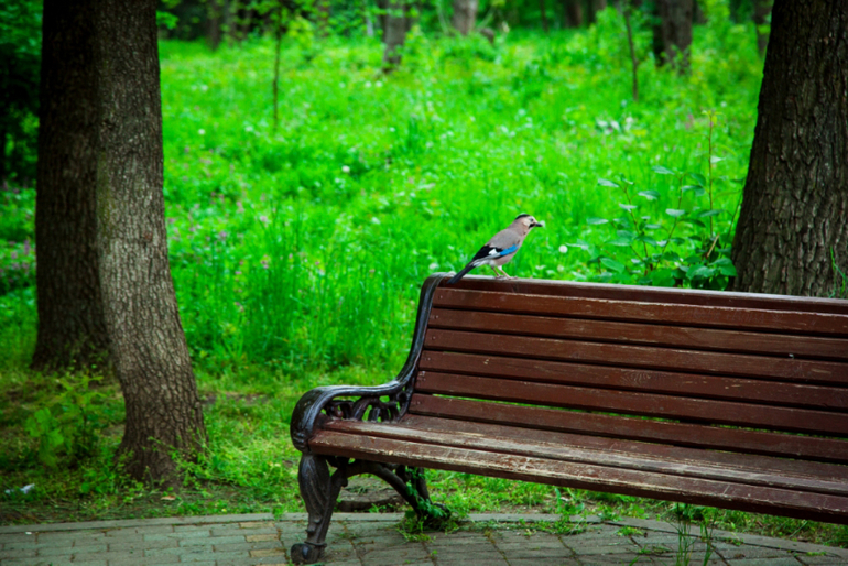 Можно встретить разных необычных птичек, белочек. За оградой бродят павлины.