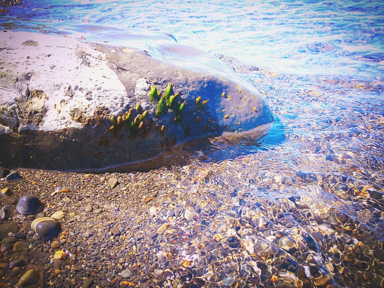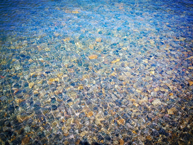 Вода прозрачнейшая в отличие от песчаных пляжей