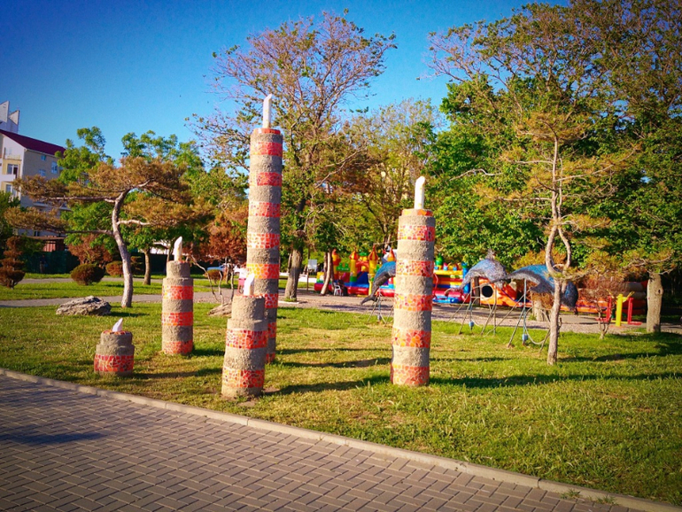 Теперь стремительно переносимся в Анапу. Здесь мы гостим у дяди. Анапа в курортный сезон разительно отличается от Анапы без туристов, что, конечно, является естественной ситуацией. В мае еще наблюдается тишина и спокойствие. Когда знаешь, как город будет выглядеть в скором времени, появляется небольшое ощущение, что он вымер :) Но скоро уже нахлынут толпы людей...некоторые отдыхающие настолько расслабляются, что днем почему-то забывают, что это тоже город, а не сплошной пляж, идут по центру города в одном купальнике.... (?!!!***??!) Зато во время вечерних прогулок, когда жара спадает, и люди массово выходят на улицы, вокруг начинает царить какая-то атмосфера всеобщего праздника:)