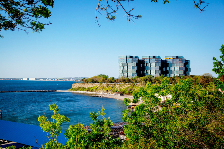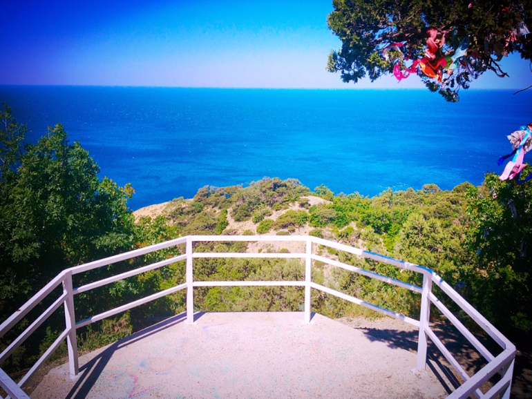 Вдалеке виднеется ресторан Форт Утриш. Несколько лет нам разрекламировали его как суперпуперское заведение. Еда там оказалась отвратная :)