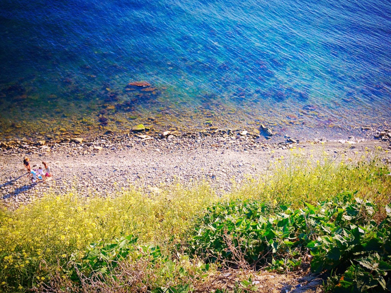 На момент нашего приезда особого тепла еще не было, море было ледяное, я пробовала стоять в нем, выходило секунд по 15. Немного удивительно было наблюдать достаточно заполненный пляж, и не только загорающих, но и купающихся (!) людей. Возможно, это приехали бесстрашные северяне))
