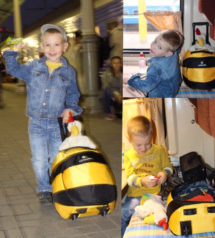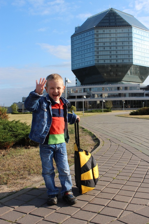Человек готов к приключению! На следующий день, мы проспали и наш самолет улетел без нас, но мы не особо расстроились и поехали на поезде если бы опоздали на поезд, был запасной план уехать на машине:))) Передвигаться с чемоданчиком весьма удобно, колесики едут по любой поверхности, если необходимо его можно поставить тк предусмотрены две ножки, стоит он весьма устойчиво, но немного под наклоном, мне первое время казалось, что он сейчас упадет, потом привыкла, расслабилась и перестала перехватывать руками в тот момент, когда Савва разворачивал очередную конфетку. Пространство выделенное для проезда петуха предназначено для выдвижной ручки, она с кнопкой и можно регулировать длину выдвижения ручки в зависимости от роста, при необходимости можно ее совсем убрать и воспользоваться прочной тканевой. Вообще, в этой чемодане подкупает "всамделешность", все, как у взрослых....ВСЕ, только для ребенка. В Минске было очень много дел и мой парень.....