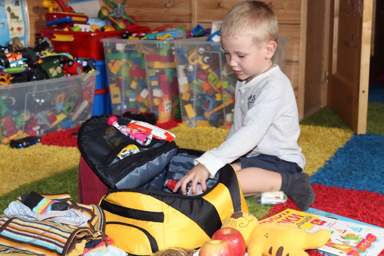 Одеяло, теплая кофта, смена белья, несколько книжек для досуга, яблоки, вода, все без проблем поместилось в основном отделении. В сетчатом кармашке расположились две пюрешки, молочный ломтик, мини аптечка и маленький пакетик сухого завтрака! Савва за грузил три машинки и мучительно думал кто из его лучших друзей достоин ТАКОЙ поездки:)))