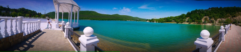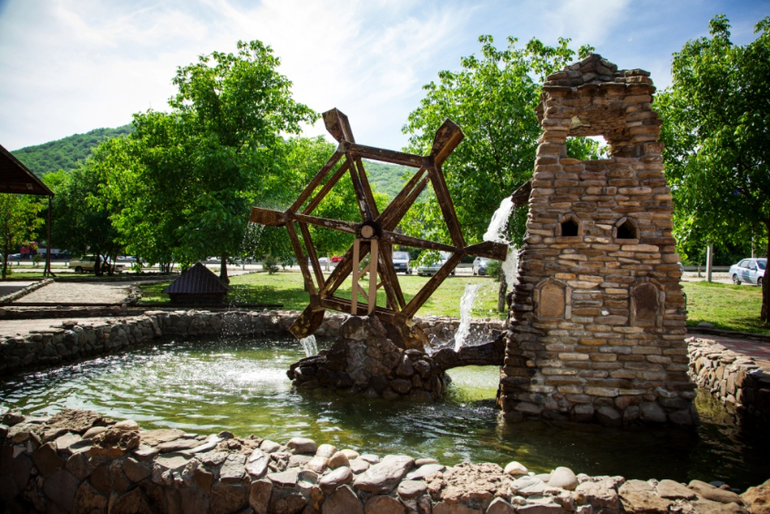 Обратную дорогу преодолели значительно быстрее. Поехали через Краснодар. По пути случайно попали в Горячий ключ :) Выполняли заказ дедушки по покупке разливного пива в ресторане "Старый замок", увидели красивый фонтанчик и мост, перешли его, а за деревьями оказался целый парк, который сразу не увидишь. Открытие вышло очень радостным))