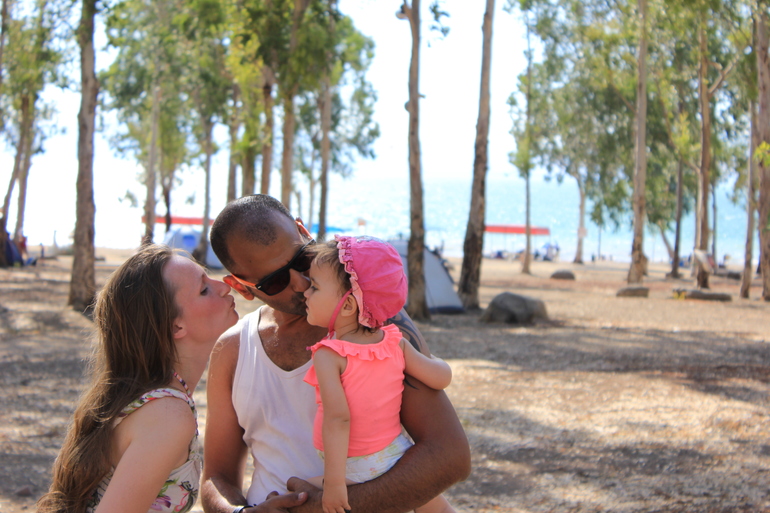 Дочь вырубилась в 19:30, не поужинав. А так днем мы кушали шашлычки, питы, хумусы и салатики.