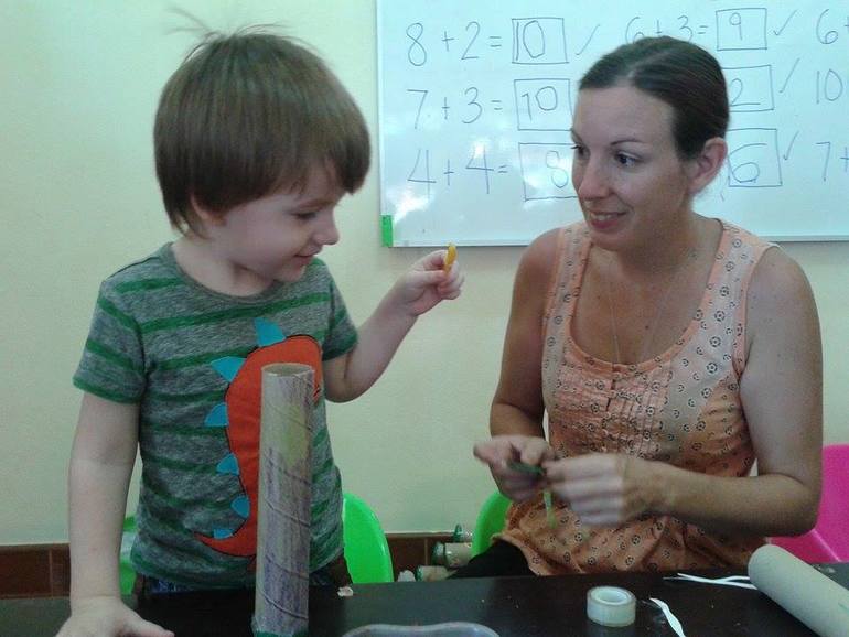 Мне бы очень хотелось выразить свою благодарность и сказать БОЛЬШОЕ СПАСИБО всему персоналу и учителям Sunflower! Рона-она филлипинка,прожила более 10ти лет в Америке,она преподает фонетику и грамматику английского языка..Она просто замечательная! Очень спокойная и уравновешенная...свободно говорит по-английски и у нее на уроках всегда Матвей сидит в первых рядах,внимательно ее слушая! Мой сын сидит НА ОДНОМ МЕСТЕ долгое время! ВАУ, да здравствует прогресс!! )))) Рона уже сейчас хвалит его,рассказывает о произошедших изменениях с Матвеем..да я и сама их вижу и слышу!))) Как только мы начали ходить в садик,у нас произошел почти мгновенный и очень заметный скачок в развитии-Матвей уже сейчас считает до 10 на английском( на русском он знает счет уже почти до 20-ти!),знает все цвета и многие слова..ну а дома я сама лично стараюсь разговаривать с ним на английском...мы поем песенки и просто болтаем обо всем на свете)