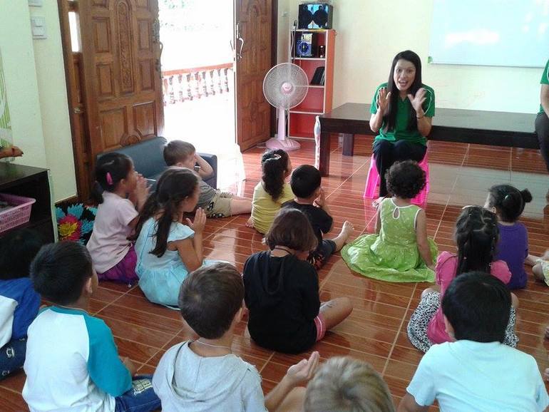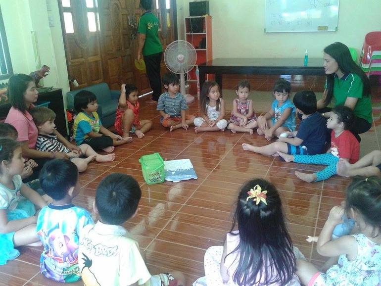 Эд..Она преподает тайский в нашем садике..Как и все тайки,она очень спокойная,обстоятельная и любит дисциплину))) Так что у нее на уроках особо не забалуешь)) НО! В садике никого из детей ни к чему не принуждают! Устал ребенок сидеть-встал и вышел во двор..походил-походил...и снова вернулся в группу)) Она добивается дисциплины путем..предоставления свободы малышу...ребенок просто видит,что остальные его одногруппники сидят и внимательно слушают Эд...и он возвращается обратно в класс и тихонечко садится на свое место,вот так!))))