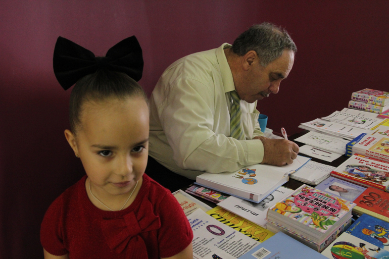 Марк Шварц. Реализует книги, в которых есть и его стихотворения. Мы купили одну и он подписал ее. (400р)