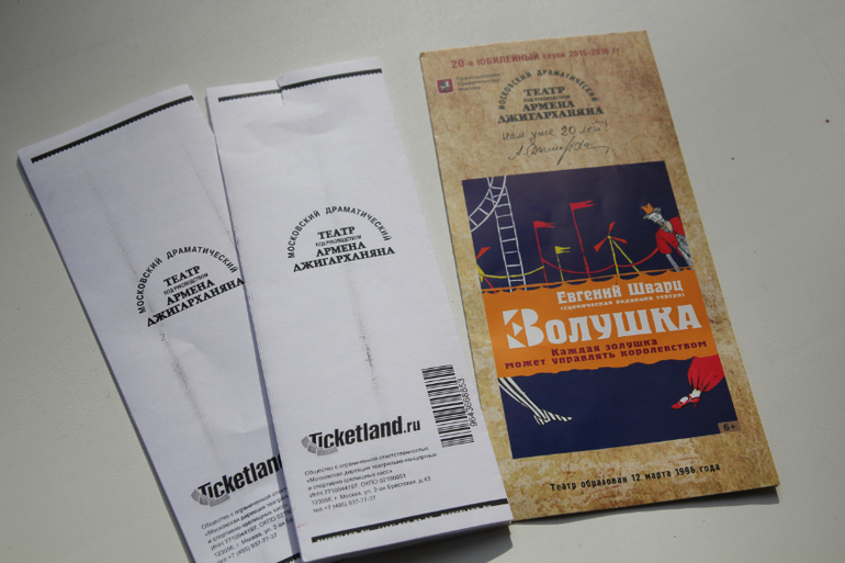 Анастасия покупает программку, 50 р. Не понравилось, что коряво подписаны карандашом фамилии актеров. Можно было написать нормально, красиво - ручкой.