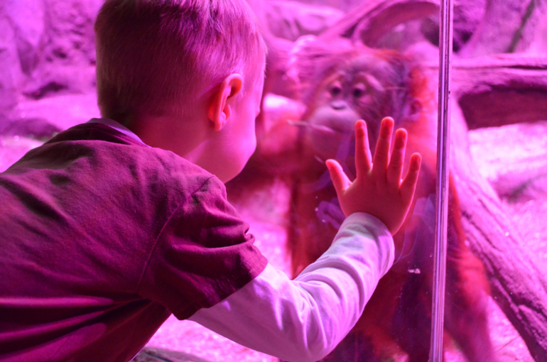 А вот рядом с этим рыжим товарищем случился казус, шансов выйти из которого без позора был один на миллион! Я отвлеклась на фотоаппарат, как вдруг мой сын снимает штаны и говорит, что хочет писать! Он так никогда не делает, обычно просто просится. Подозреваю, что увидел, как это сделала голопопая обезьяна, вот в голове и перепуталось. АААА, что делать??? Ощущение, что ты как героиня кино, за которой гонится бандит с пистолетом, и ты за долю секунды должна найти волшебную дверь. Честно, я была готова заскочить в любую подсобку и использовать первое попавшееся ведро. Но я обернулась назад, и непостижимым образом прямо рядом с нами оказался именно туалет, причем, видимо, единственный в зоопарке. Так что в случае острой необходимости ищите рыжую обезьяну))). Кажется, это орангутанг.