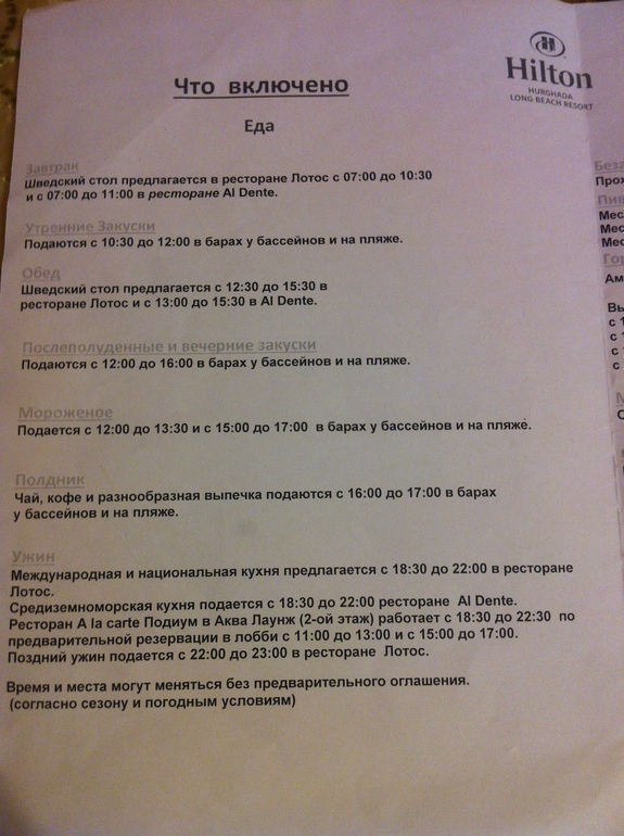 Еда: на мой придирчивый вкус есть нечего, особенно детям...Суп один раз за 10 дней был приличным, каша это одно молоко с парой крупинок, иногда и не разваренных. Омлет, рис, картофельное пюре,запеченый картофель. Иногда были жареные сосиски мелкие. В основном рыба , птица (курица, индейка). Были как то крабы, есть в них нечего, мелкие и невкусные. Зато русские все с ними фоткались)))). Никакого отварного мяса не было. Периодически по вечерам были котлеты из баранины в виде брусочков на гриле и курица. Огурцы, помидоры, капуста. Йогурты на разлив и если самой попросить то тебе вынесут фруктовый йогурт в пачке ( сама случайно увидела как тетя одна так делала). Вот десерты очень вкусные. На завтрак пончики обалденные....ммм. Хлопья были с молоком. Хлеб, тосты можно было поджарить, несколько видов варенья, спрет в упаковочках. В целом есть было что, но например по сравнению с Шармом 5 звезд, нечего. Мои дети приехав домой накинулись на кашу и суп,и Андрей сказал - мама, объедение! Думаю все понятно). Кстати ресторанов 2 - аль денте сразу на входе в лобби и как бы внизу - Лотос. Так вот аль денте столовка. Лотос приличнее. Из-за большого количества людей если придешь к началу-очередииии (причем их устраивают исключительно русские), если позже - не хватает приборов, нет йогуртов, фруктов,кофе и т.д, надо ждать пока все заново заполнят, а это ужас как не скоро, а дети ждать не хотят((. Были пару раз бананы, так наши чуть драку за них не устроили, один дядя хотел сразу штук 7 взять, и понеслось...