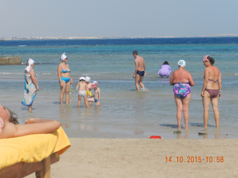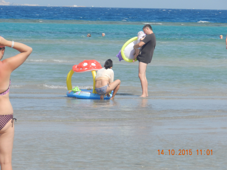 пляж очень хорош для детей, не глубоко на большом расстоянии от берега,песчаный. Хотя есть и ложка дегтя ( я очень придирчивый критик) - при входе есть камни, в море куча мусора. Полиэтиленовые пакеты повсюду лежат присыпанные песком, коробки из под молока, йогуртов,еще какой то ерунды, один раз нашла бритвенный станок.....Не знаю откуда берется, то ли с Хургады приносит морем, то ли с кораблей люди кидают в море. В общем чистят пляж и свою территорию моря плохо, а может и не чистят вовсе.