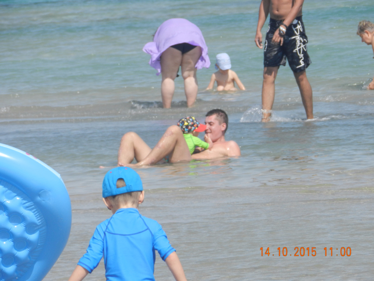 Купались дети утром в защитных футболках из декатлона и плавках из смика, вечером только в плавках. Мазала только ноги, руки утром 30кой. Еще надо кепку из такой же ткани с накидкой на плечи, она хорошо уши защитит, а то в этих кепках уши оказались в зоне риска)