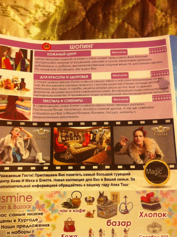 Гид от анекс тура - Мухаммед действительно оказался наглым ( о чем гласят все отзывы), навязывал экскурсии и рассказывал чем нам грозит отказ от них). Торговаться там надо везде, как оказалось, даже в аптеке). Так 10 таблеток обезболивающих мне обошлись в 5 долларов, а изначально были 20). На экскурсиях мы не были, если кому интересно, вот