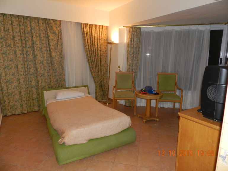 Зато номер у нас был шикарный. 2-х комнатный, с 2-мя балконами и лежаками. В ванной комнате ванная. Мы очень переживали куда нас поселят, территория большая, есть домики оооочень далеко от моря и от ресепшена ( там рестораны). Читали отзывы, думали денег дать при заселении чтобы поближе поселили. Но гид в автобусе по дороге в отель, как мысли прочел и сказал не надо так делать если что потом переселитесь. Мы его послушали, денег не дали, номер не просили, нам и так дали нормальный, от моря не далеко, от еды подальше конечно но не критично. И кстати действительно, люди спокойно переселялись в течении отдыха, некоторые аж по 4 раза). Воду давали по 1.5л на НОМЕР!!!!, когда люди из куллеров набирали, их гоняли)