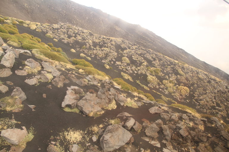 Ниже пробивается хоть какая-то жизнь. А у подножья все цветет, растет и благоухает. А еще под Этной растянулся город Катания. Живут же там люди и не боятся)