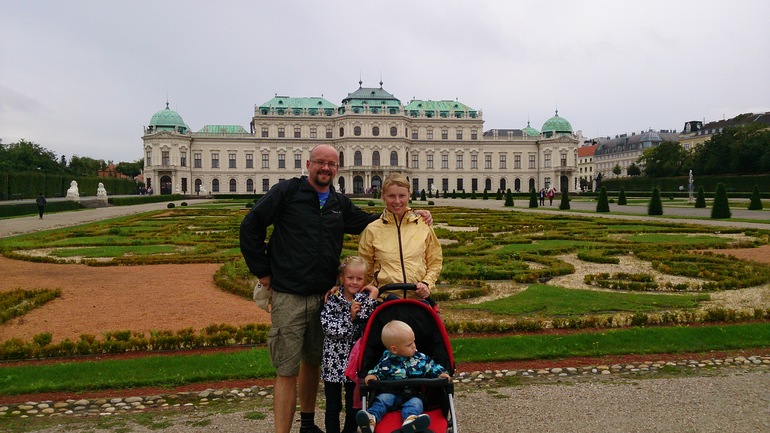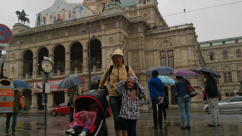 На второй день была запланирована велопрогулка по кольцу вокруг исторического центра. Но погода спутала наши карты и мы посвятили день походам по музеям под проливным дождем. Обьектами нашего внимания стали художественно-исторический музей и дворец Бельведер, где собственно и выставлен оригинал легендарного полотна Гюстава Климта "Поцелуй". Ради одного лишь этого шедевра посещение Вены было не напрасным. Перемещались по городу общественным транспортом с коляской. Там все удобно для этого устроено.